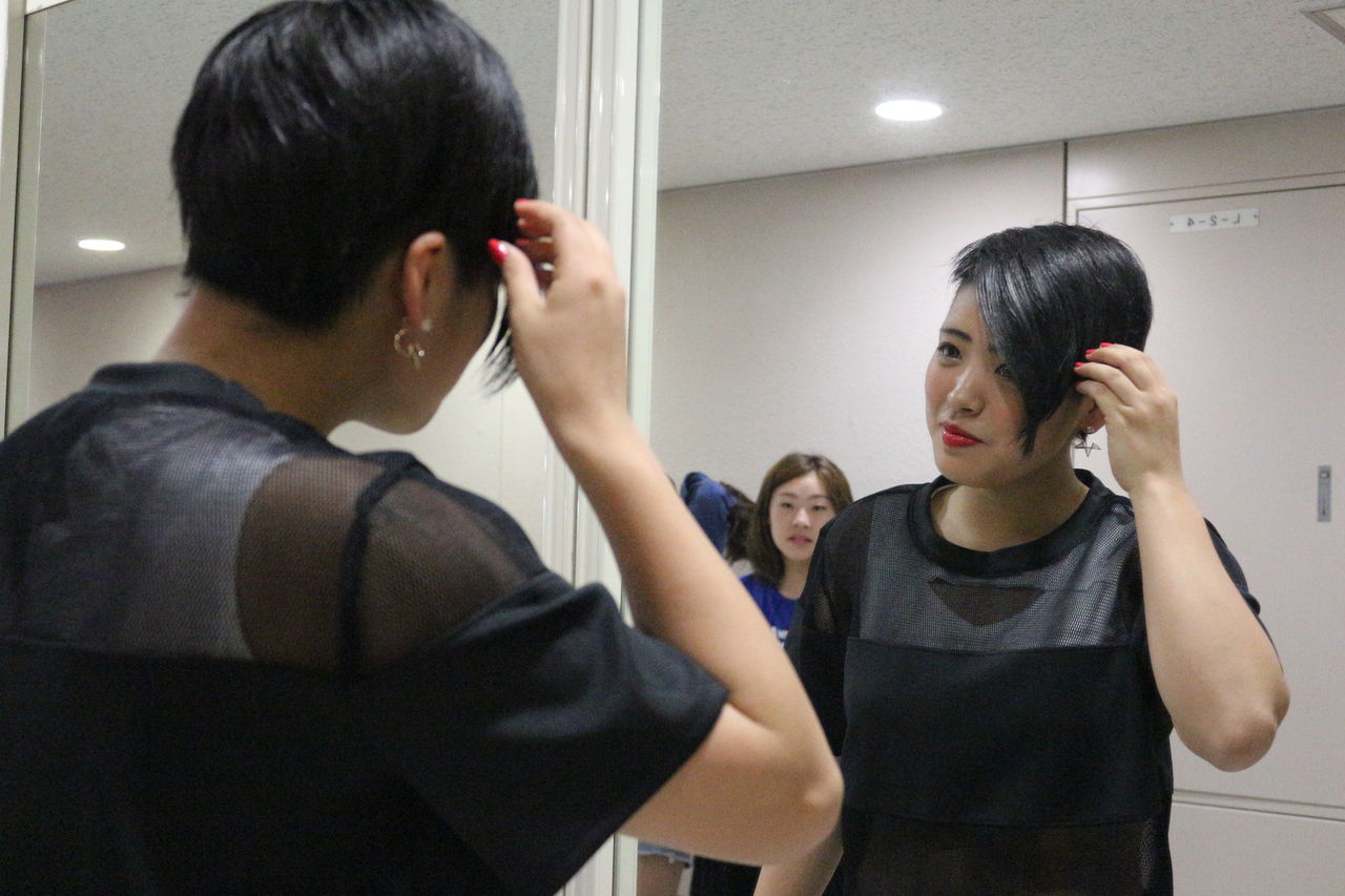 はじまる前から鏡の前でポーズを決めたり、何回も鏡を見てメイクや髪の毛を直したり、いつもよりみんな一段とおしゃれしていました:)